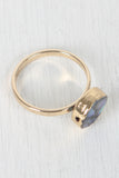 This delicate ring features a high polished metal finish with an abalone shell on a non-adjustable band.