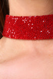 This choker necklace features a wide band, studded rhinestones, and an adjustable lobster claw closure.