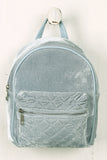 This adorable mini backpack features velvet fabrication, quilted design on front small zipper pocket, and a large main zipper pocket. Main zipper pocket features inner zipper closure pocket, top strap, and adjustable shoulder straps.