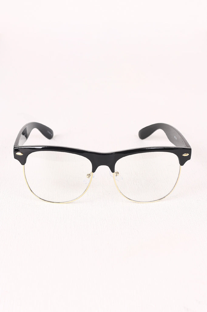 These cool glasses feature a semi-wayfarer inspired design and semi-rimless trim. Include a plastic and metal framing, thick wide arms, and padded cushions for all day wear.