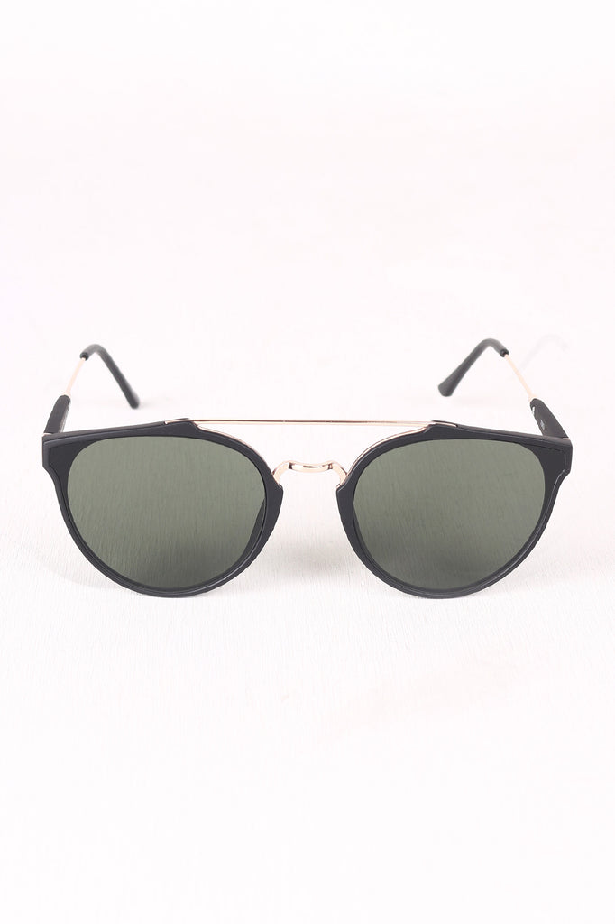These awesome retro sunglasses feature dark round lenses, a double bridge design, thin arms, and a combined metallic and plastic frame, finished with a matte look.