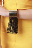 This cuff bracelet features a high polished finish, long fringe design and an open end for easy on/off.