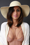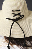 This lovely sun hat features a straw weave design, rounded crown, lace-up design at back, and inner ribbon band for comfort wear.