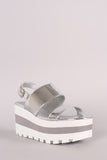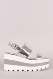 Qupid Metallic Double Band Lug Sole Slingback Striped Flatform Wedge