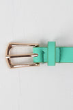 Dress up or dress down your outfit with the Spellbind Me Belt. This charming belt features leatherette band throughout, rectangular shaped gold tone buckle, and finished buckle holes for adjustable fit. One size fits most.