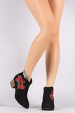 Qupid Suede Embroidery Floral Chunky Heeled Booties