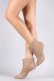 These ankle boots feature a soft vegan suede upper, peep toe silhouette, and back zipper closure. Finished with a cushioned insole, soft lining, and round perspex heel.