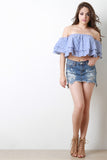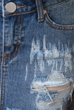 This mini skirt has a classic 5-pocket design with a zipper and button closure and belt loops. Finished with a distressed design. Accessories sold separately. 100% Cotton.