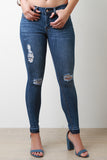 These denim jeans feature a slightly stretchy fabrication, mid rise waist, belt loops, zipper fly, single button closure, five pocket design, distressed accents, and taper cut legs. Accessory sold separately. 77% Cotton, 13% Viscose, 8% Polyester, 2% Spandex.