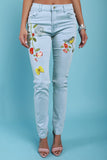 These embroidered front, high rise waist, classic 5-pockets, zipper fly, single button closure, and belt loops. Accessory sold separately. 95% Cotton, 5% Spandex.