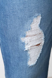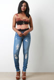 These denim jeans features distress front, stretchy skinny fit legs, fringed hemline, classic 5-pockets, belt loops, zipper fly, and single button. Accessory sold separately. 98% Cotton, 2% Spandex.