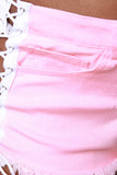 These denim shorts features a mid rise waist, frayed hemline, 5-pockets, belt loops, eyelet lace-up closure, open sides with contrasting ribbon trim, and eyelet lace-up. Accessories sold separately. 97% Cotton, 3% Spandex.