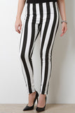 These cute pants feature a mid-rise design with an elasticized waistband, vertical striped pattern, taper cut legs, and zippers at the ankles. Accessories sold separately. 97% Cotton, 3% Spandex.