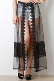 Scallop Lace Trimmed Mesh Cover-Up Maxi Skirt