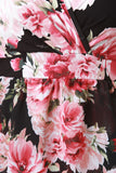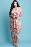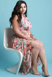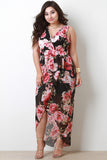 This dress features floral print on semi-sheer chiffon fabrication, sleeveless, surplice neckline, overlapping surplice skirt to a high low hemline, and partially lined. Accessory sold separately. Made in U.S.A. 96% Rayon, 4% Spandex. Contrast: 100% Polyester.