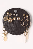 This set of six earrings features rhinestones, half sphere studs with push back closures, and a variety of dangle earrings with post push on backs.