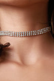 This dainty bra body chain features a halter neckline, open triangle bra cage design with rhinestone accents, cable chain, and adjustable with a lobster claw closure. Includes a choker necklace with three rows of rhinestones and a lobster claw closure.