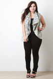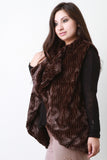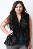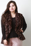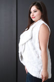 This plus size vest features a striped faux fur fabrication, open front with a flap collar, and fully lined. Accessories sold separately. 100% Polyester.