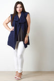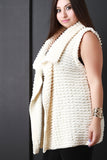 This plus size vest is sweater knit, featuring a pulled knit detailing. Open front with a draped collar line. Unlined. 100% Polyester.