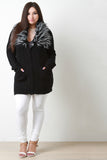 This plus size cardigan features a soft faux fur collar, long sleeves with ribbed cuffs, front patch pockets, and zip-up front closure. Accessories sold separately. 100% Acrylic, Contrast: 100% Polyester.