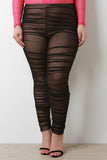 These legging pants feature an elasticized mid-rise design, ruched design throughout, fully lines, and taper cut legs. Accessory sold separately. Made in U.S.A. Self: 95% Polyester, 5% Spandex. Lining: 100% Polyester.