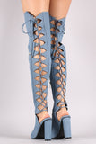 Denim Back Lace Up Chunky Heeled Over-The-Knee Boots