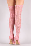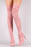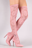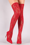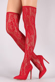 These eye-catching boots feature a pointy toe silhouette, semi-sheer floral lace mesh, slightly stretchy fabrication, single sole, and wrapped stiletto heel. Pull-on style and lightly cushioned insole.