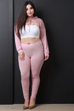 This plus size maxi top features a round neckline, long sleeves, and double slit with lace-up detail. Accessories sold separately. Made in U.S.A. 95% Rayon, 5% Spandex.