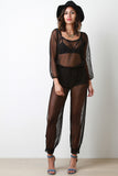 Semi-Sheer Mesh Long Sleeves Jumpsuit