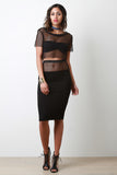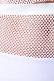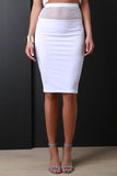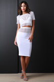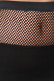 This skirt features a stretchy textured fabrication, elasticized high waist design with an open fishnet look, and a midi length hemline. Accessories sold separately. Made in U.S.A. 100% Polyester.