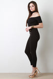 Choker Bardot Decor Button Jumpsuit