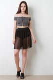 Semi-Sheer Mesh A-Line Raw Edge Skirt