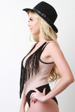 Fringe Scooped Mesh Contrast Sleeveless Bodysuit