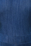 This chic jumpsuit features denim fabrication, mock neckline, sleeveless construction, high waist seam, taper cut legs and an exposed back zipper closure. Accessories sold separately. Made in U.S.A. 81% Cotton, 15% Polyester, 4% Spandex.