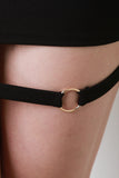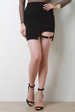 This edgy skirt features stretch fabric, high waist, cut out design, o-ring accent, and mini length. Accessories sold separately. Made in USA. 92% Polyester, 8% Spandex.