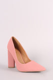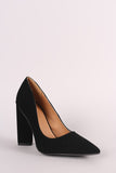 Qupid Nubuck Pointy Toe Chunky Heeled Pump