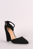 Bamboo Nubuck Pointy Toe Ankle Strap Chunky Heeled Pump
