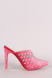 Velvet Studded Pointy Toe Stiletto Mule Heel