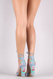 Shoe Republic LA Denim Pointy Toe Embroidered Floral Chunky Heel