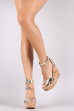 Bamboo Metallic Patent Cross Band Cork Platform Wedge
