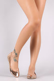 This lovely ballet flat features a rounded toe, shiny patent with contrast trim at topline, lightly padded insole, and easy slip on style.
