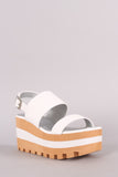 Qupid Double Band Lug Sole Slingback Striped Flatform Wedge