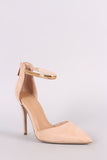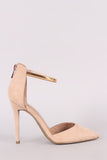 Suede Pointy Toe Metallic Ankle Strap Stiletto Pump