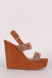 This wedge , features two straps across the front with an adjustable back strap. Detailed with tribal designed beads. Elevated on a platform.