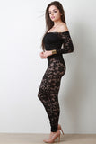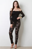 Semi-Sheer Floral Lace Bardot Jumpsuit