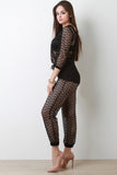 Diamond Fishnet Mesh Boat Neck Jumpsuit