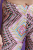 This two piece matching set features a geometric print, strapless tube bandeau with pants with flare cut legs. Accessories sold separately. Made in U.S.A. 95% Polyester, 5% Spandex.