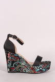 Bamboo Satin Ankle Strap Embroidered Brocade Platform Wedge