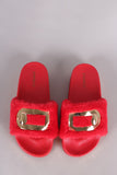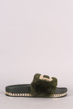 Bamboo Hardware Embellished Fur Chain Slide Sandal